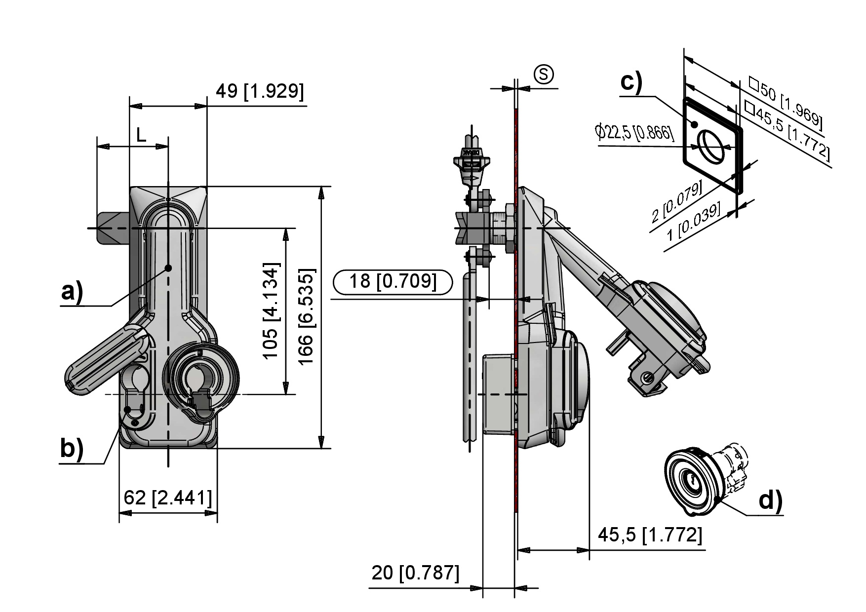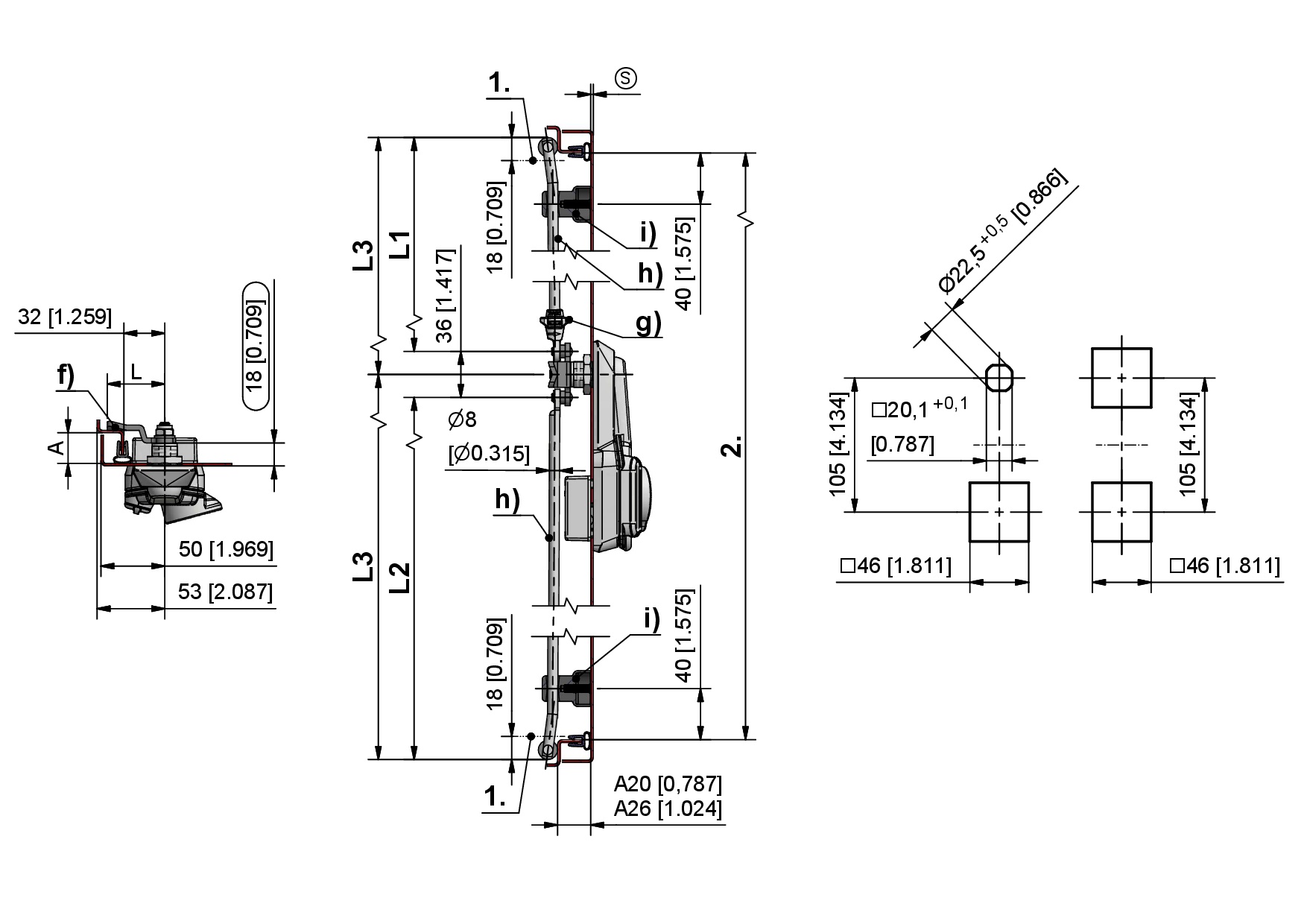 (S) Door-thickness 3mm - max. 6mmDrawings for rod calculation (see accessories):
