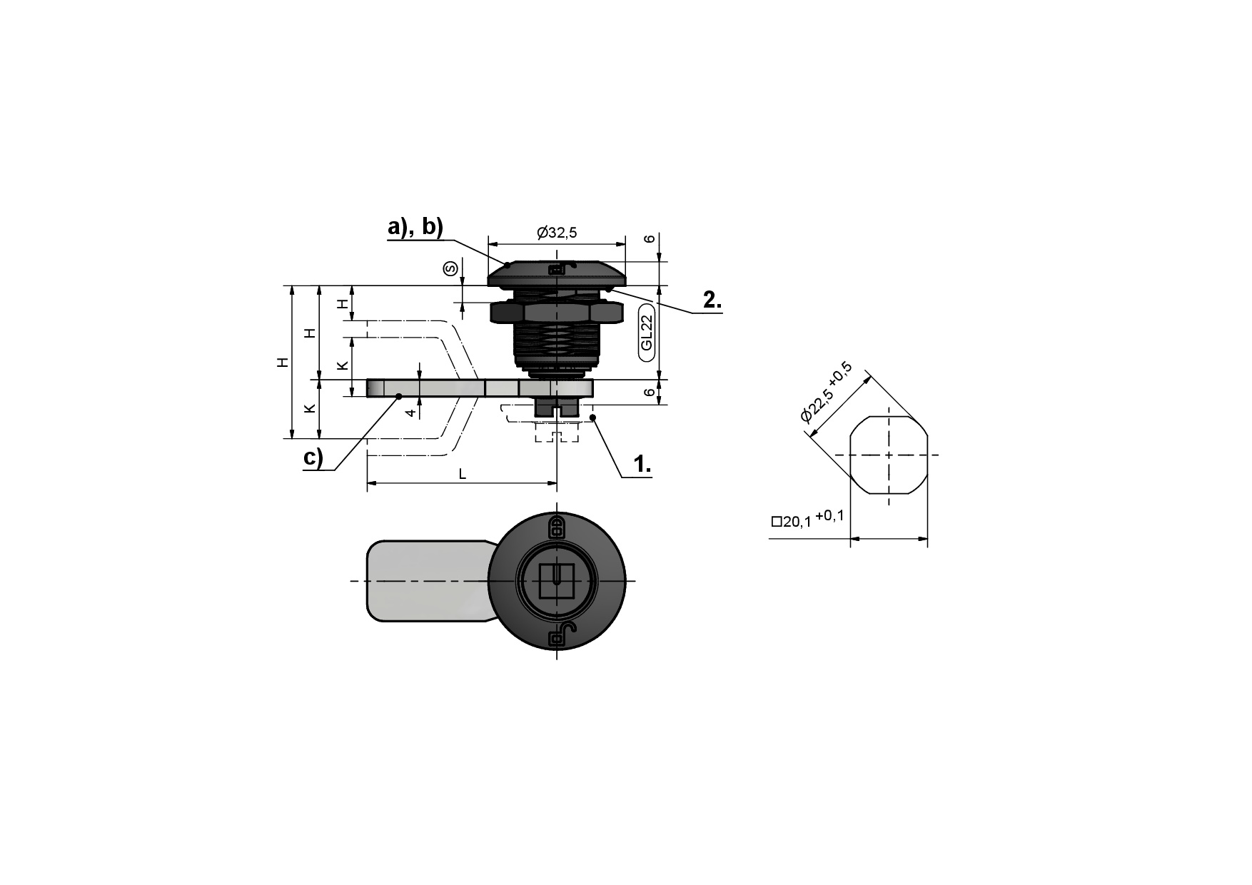 - Gehäuse, Betätigung: GDZn, schwarz matt gepulvert